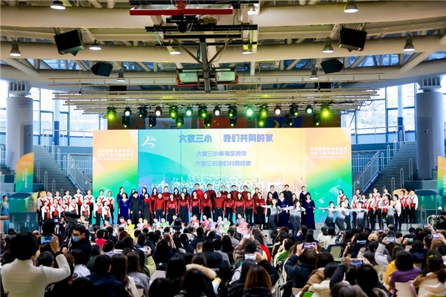 会议伊始,中关村三小大家艺术团带来了歌舞《我们共同的家》,该节目由学校金帆合唱团、舞蹈团的学生,教师艺术团,家长艺术团代表共同演绎,以艺术形式生动诠释了校家社在美育中共融、在协作中共进的育人实践。