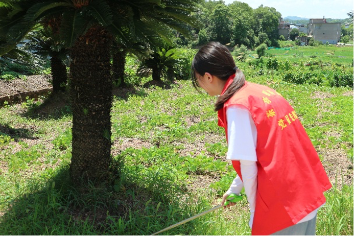 为助力和美乡村建设,团队积极开展清洁志愿活动。团队成员带着扫帚、垃圾袋、镰刀等工具,对200平方米的村广场进行全面清理——铲除杂草、捡拾垃圾、整理散落农具,汗水浸湿了队服,却换来了广场的整洁一新。