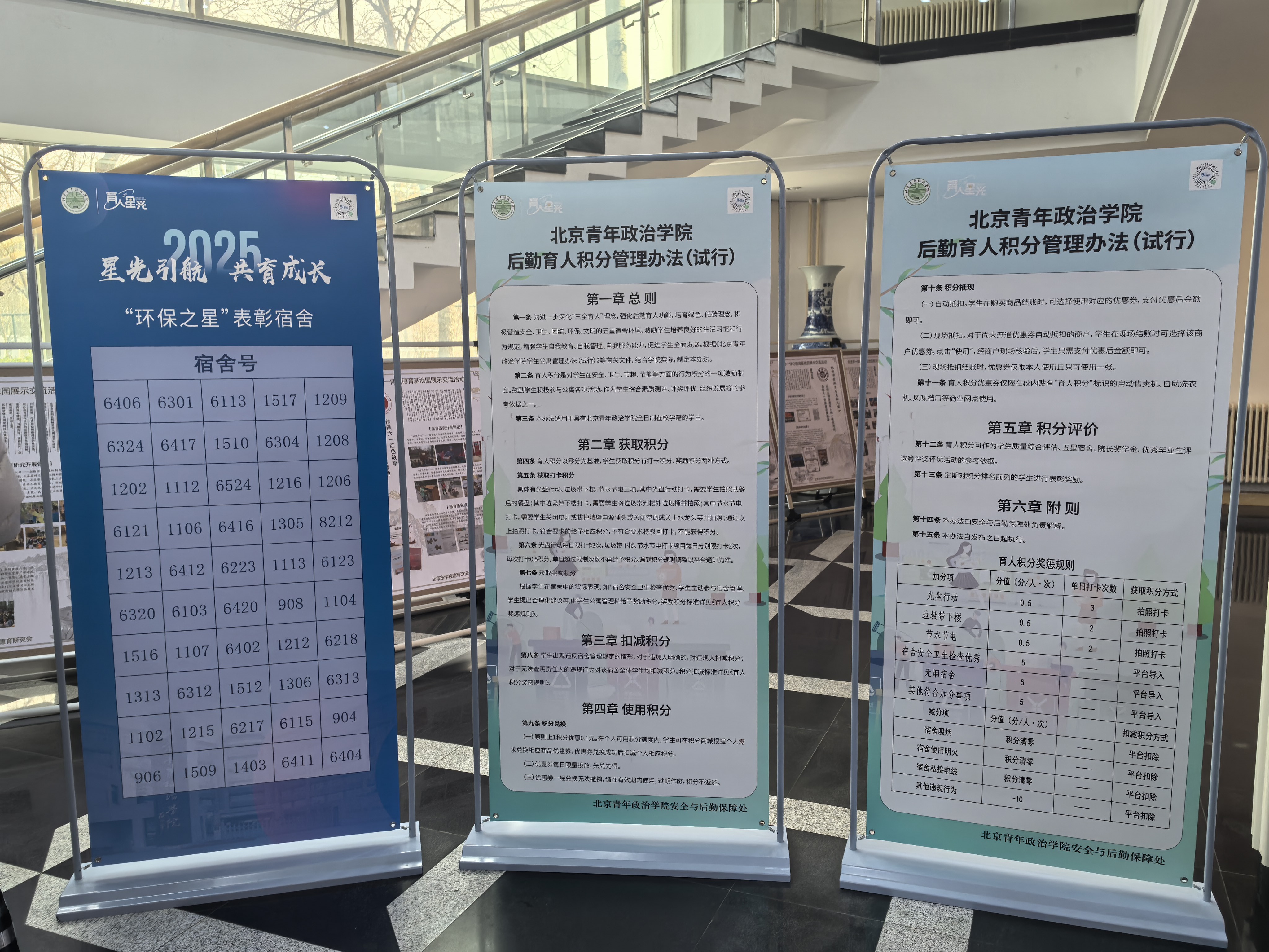 “育人星光计划”是由教育部、中国教育后勤协会、北京市教委和全国多所高校共同发起的一种新型后勤育人模式。该计划秉持“精神与物质奖励结合、社会与经济效益并重”的理念,旨在激发学生成长动力,引导学生养成简约适度、绿色低碳的校园生活新风尚。对学生学习、生活表现量化积分,通过积分抵现实现校内消费自动抵扣,让育人过程可视化、成长轨迹数字化、评价激励科学化,开启了后勤育人的新范式。助力同学们实现自我管理,养成良好的行为习惯,让每一位同学都能在在光盘行动、垃圾带下楼、节水节电的生活小事中培养责任与担当。