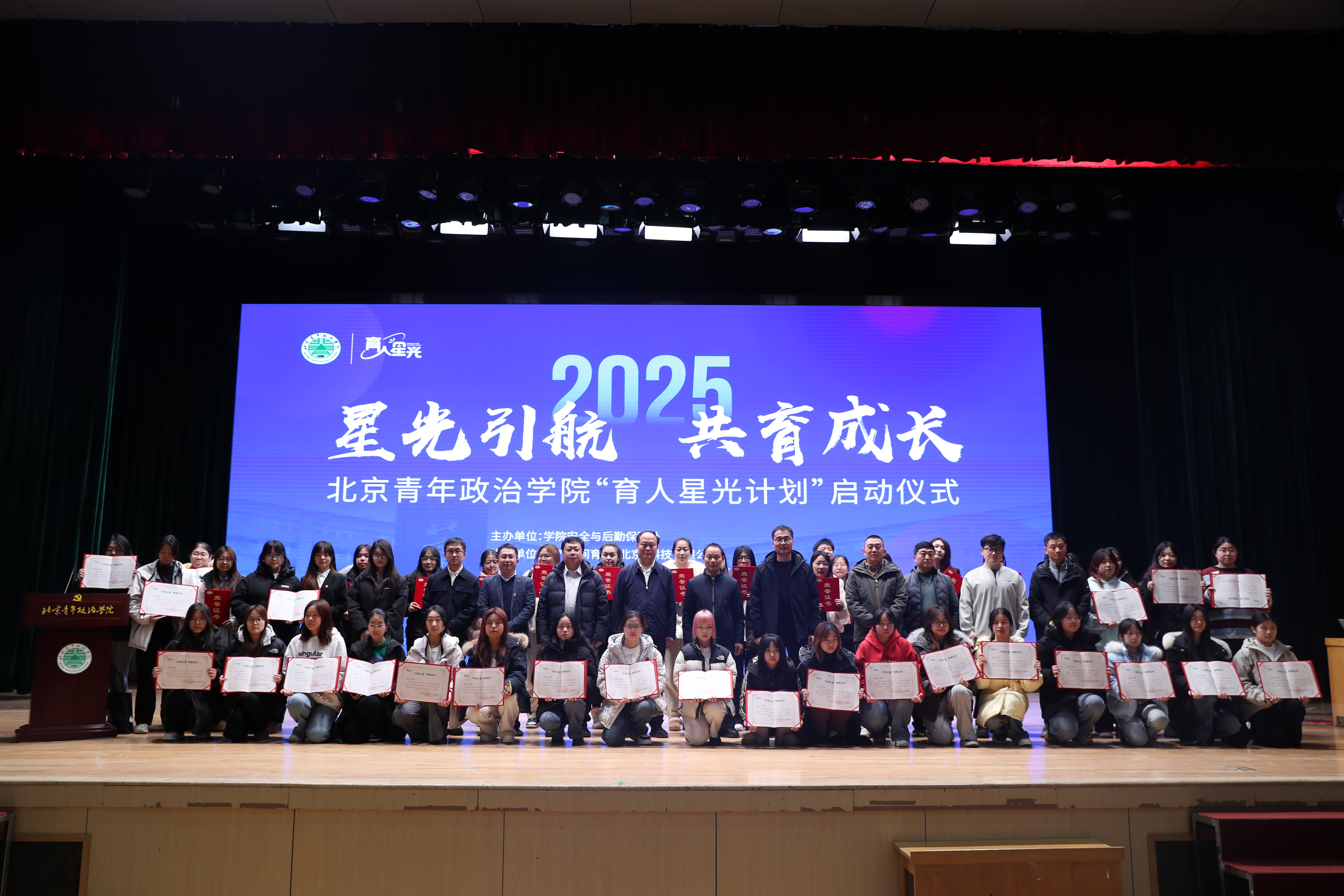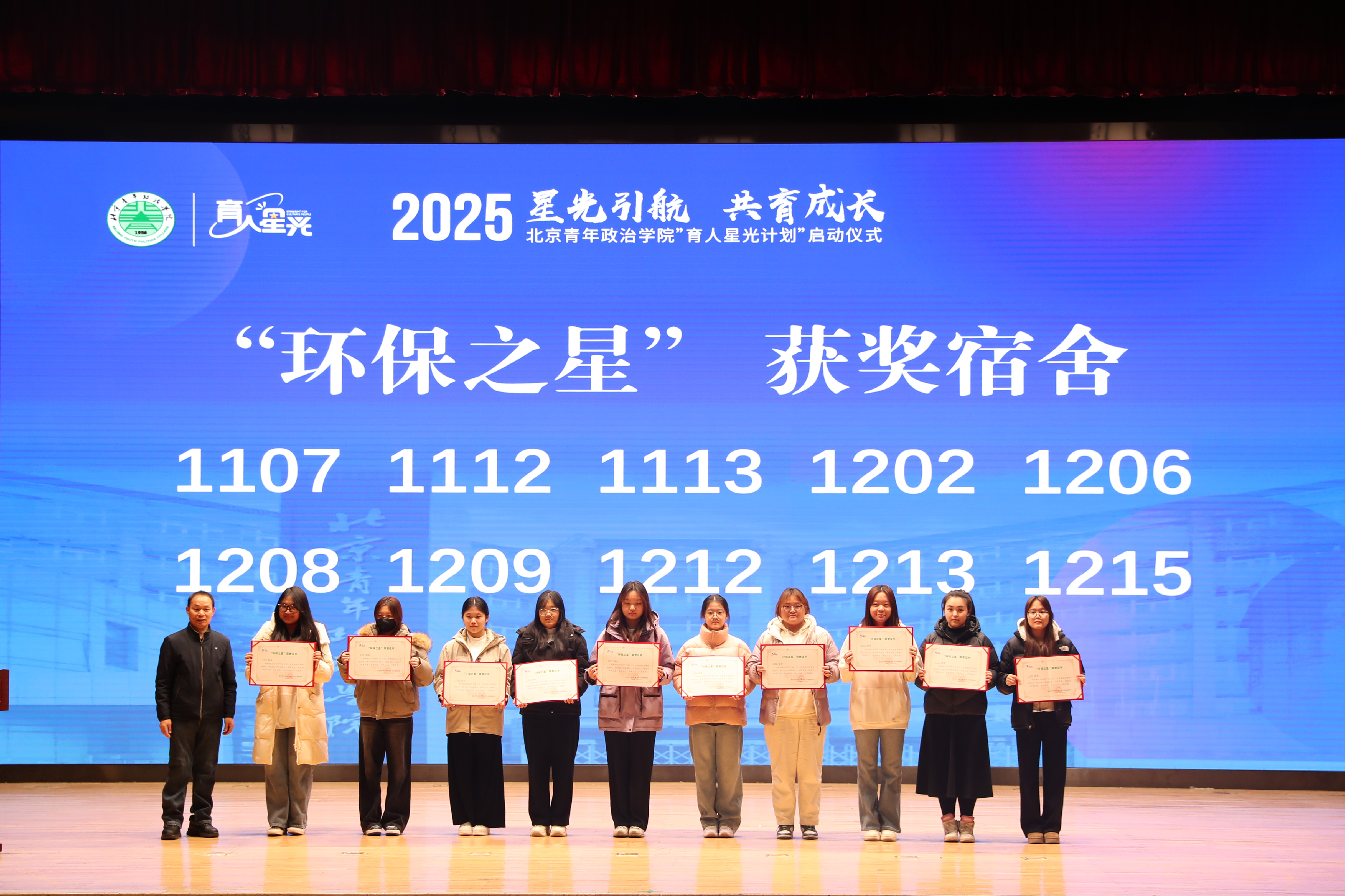 近日,北京青年政治学院“育人星光计划”启动仪式暨“环保之星”宿舍表彰活动在学院礼堂隆重召开。学院副院长刘如赞出席启动仪式,党委宣传部、安全与后勤保障处、学生处、团委、财务处负责人,各二级学院党总支副书记及300余名学生参加活动。此次活动以“星光启航,共育成长”为主题,是教育强国背景下学院努力打造后勤育人的创新举措。学院安全与后勤保障处坚持高质量党建引领高质量发展,积极发挥部门优势,深度挖掘实践育人价值,努力打造“光盘行动”、垃圾带下楼、节水节电等特色育人实践活动,联合餐饮、自助售卖机、自助洗衣机企业,打通积分消费抵扣关键环节,发起成立后勤育人共同体,实现校企协同育人,助力学生成长成才。活动现场,师生代表和企业代表共同启动“育人星光计划”。