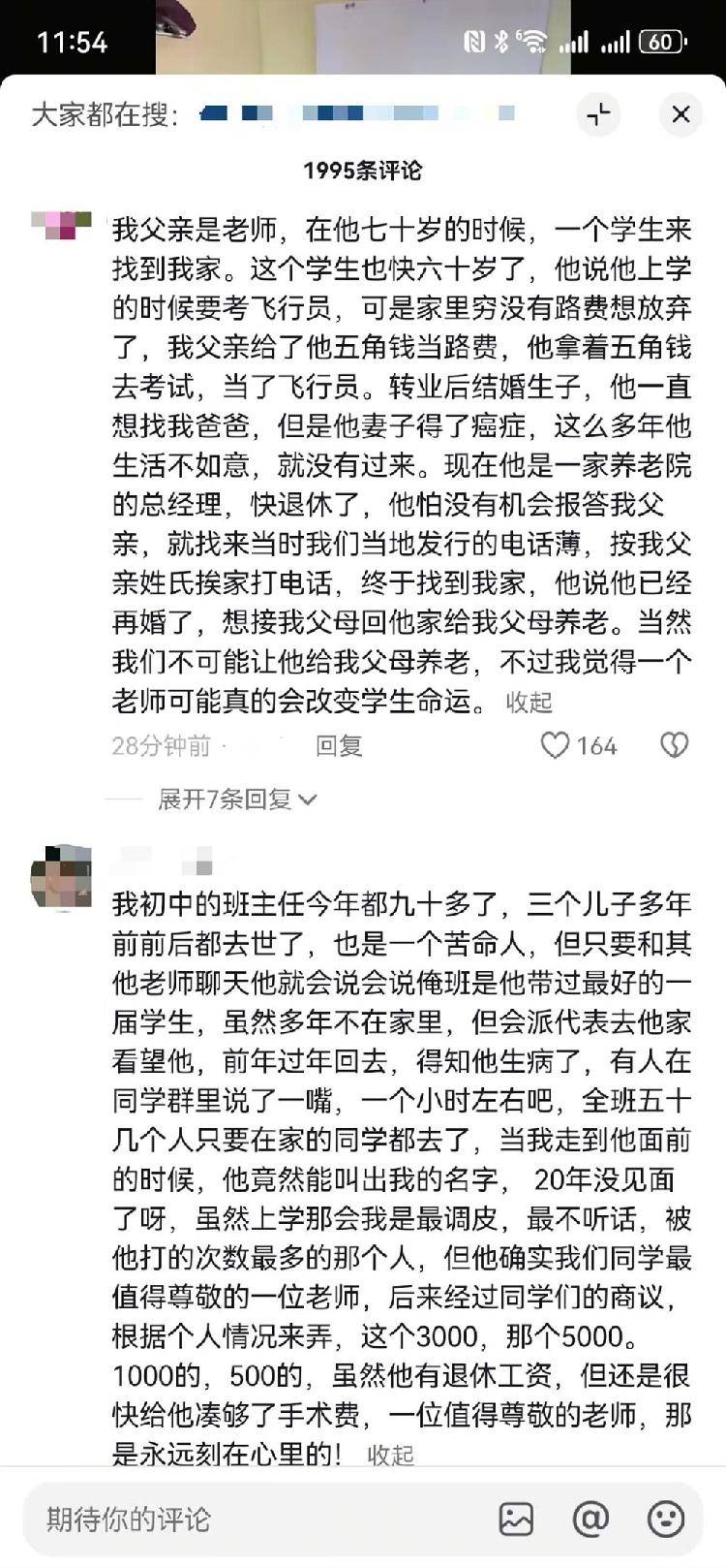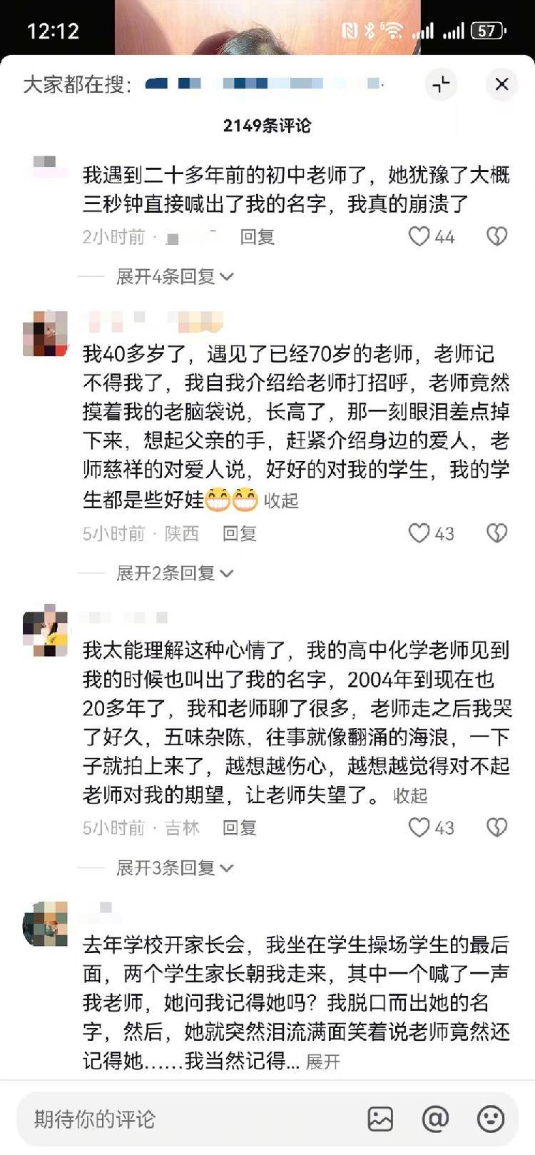 在评论区,不少李老师教过的学生都现身了:“这不是李老师吗?”“我08年就是他教的呀”……这些李老师学生的IP来自河南、江苏、北京、山东等全国各地。视频火爆后,众多网友开始在评论区回忆自己的老师,评论区,老师和学生的故事一个接一个,一个比一个感人。