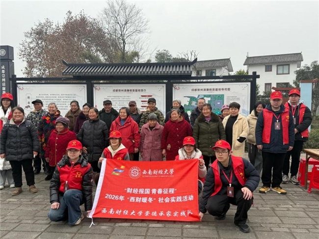 冬日蓉城暖意浓,家风传扬润人心。2026年1月9日至15日,西南财经大学崇德承家实践队一行7人,以“涵养社会主义家庭文明新风尚”为目标,创新构建“青色润校、绿色兴村、蓝色守廉、赤色铸魂、古色溯源”五色实践体系,先后深入崇州市桤泉小学、隆兴镇群安村、荷风廉韵廉洁文化教育基地、天府家风馆及杜甫草堂博物馆,开展为期七天的“西财暖冬”家风传承万里行专项实践活动。实践队锚定“调研—记录—传承—传播”全链条闭环,打造沉浸式、互动式实践项目,让优良家风在校园浸润、乡野扎根、场馆传扬,以青春之力激活家风文化生命力,交出了一份实绩亮眼的实践答卷。